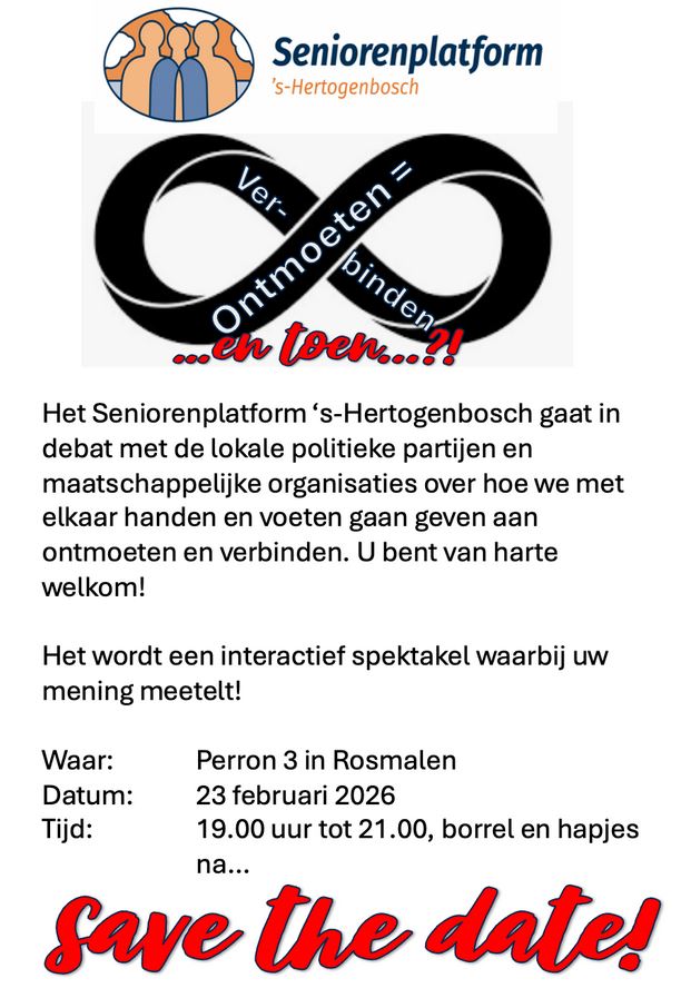 Het Seniorenplatform ’s-Hertogenbosch verbindt en verenigt verschillende seniorenorganisaties (o.a.KBO-Vinkel), en -verenigingen uit de gemeente ’s-Hertogenbosch.