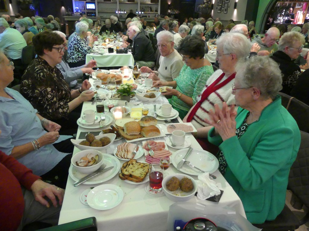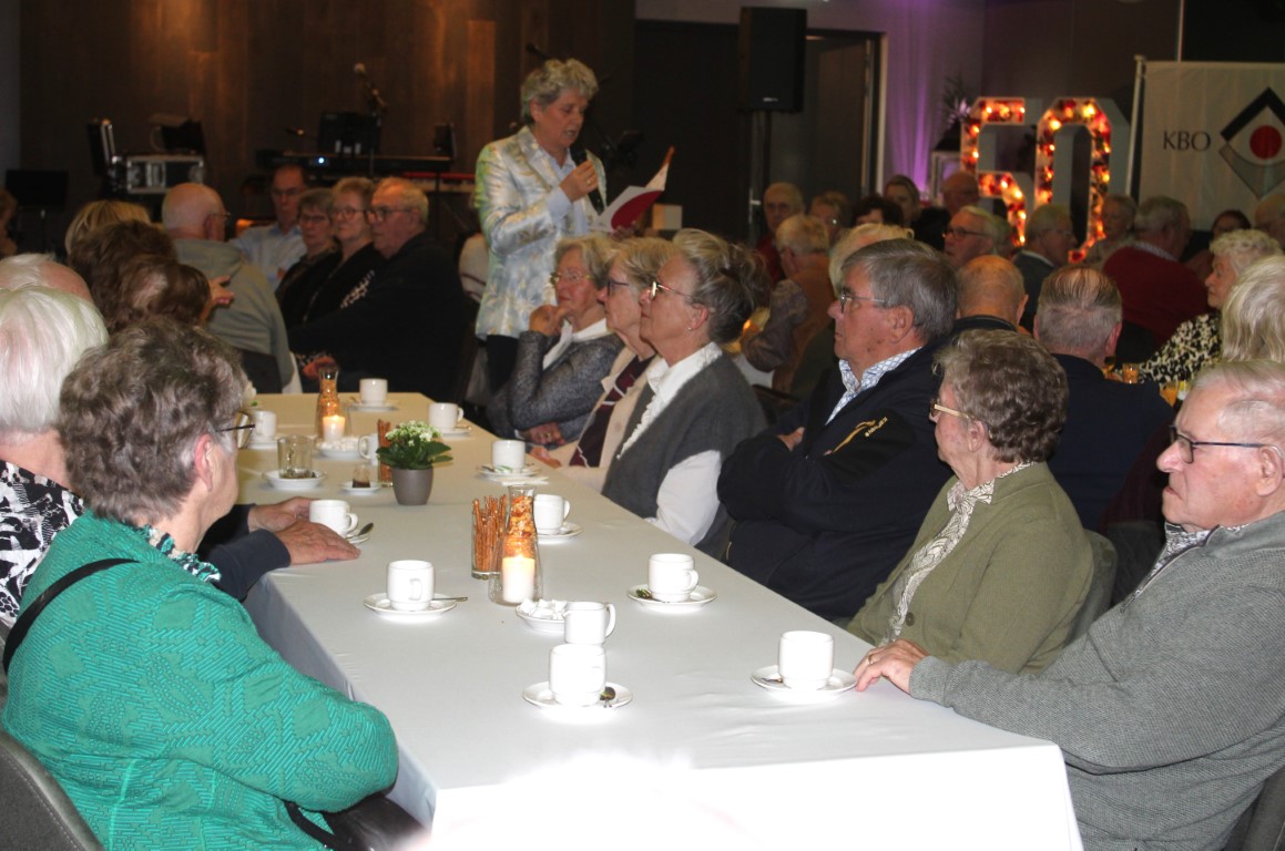 Wat kwamen er veel leden naar ons jubileumfeest. Geweldig! Vanaf 14.30 uur waren we welkom bij Den Driehoek waar we gelijk werden verwend met kofie/thee en een heerlijk taartje. Dat smaakte goed en daarna een lekker biertje, glas wijn, advocaatje mét slagroom of glas fris. Onze voorzitter Evelyne van Uden sprak een mooi welkomswoord en blikte kort terug op een stukje geschiedenis van KBO-Vinkel en de rol van ons senioren in de huidige maatschappij.