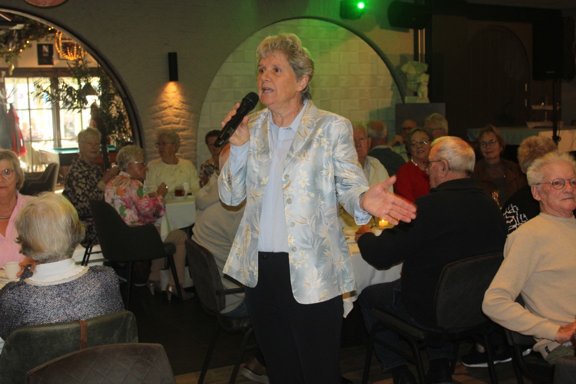 Heel blij waren we dat ook de wethouder van ’s Hertogenbosch, Marianne van der Sloot, tijd had vrij gemaakt om naar Vinkel te komen en mooie woorden sprak. In Vinkel doen we het zo gek nog niet en dat wist en zag zij ook. Zij ziet het belang van een bloeiende seniorenvereniging voor een dorp en feliciteerde iedereen met het behalen van deze mooie mijlpaal.